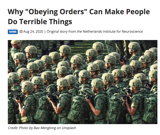 SciTechDaily – New Brain Study Shows Why Obeying Orders Can Make Us Do Terrible Things