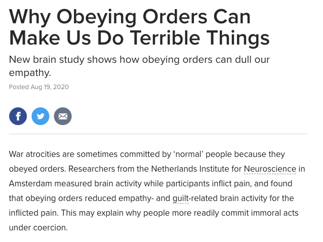Neuroscience: News & Research – Why « Obeying Orders » Can Make People Do Terrible Things